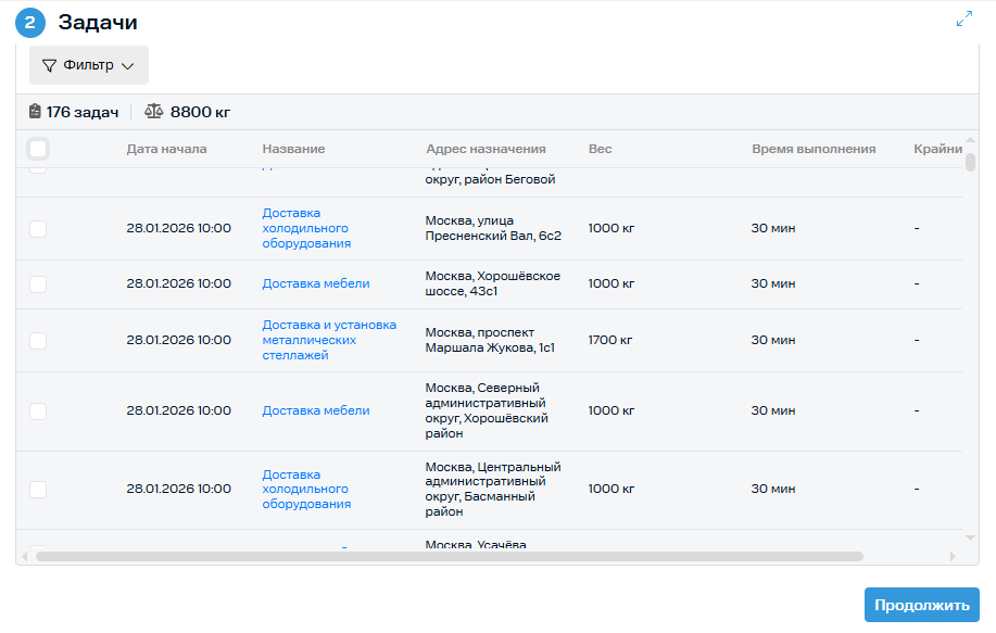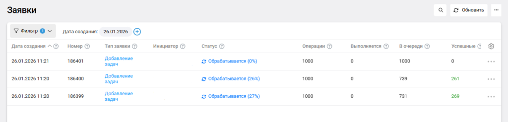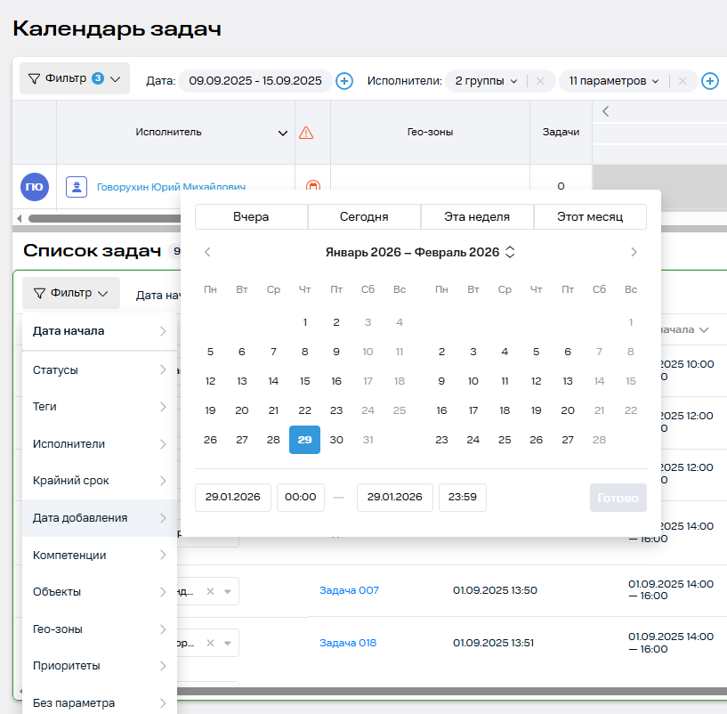 Также после входа в услугу в списке задач по умолчанию отображаются задачи за текущие сутки.