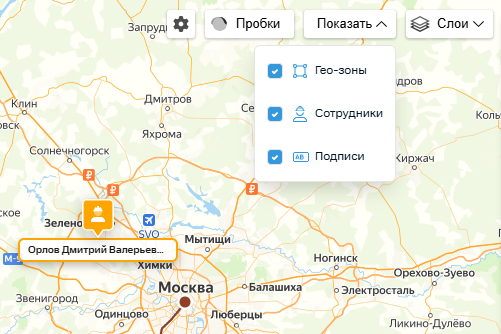 видимости гео-зон и сотрудников на карте. Сделать это можно по нажатию на