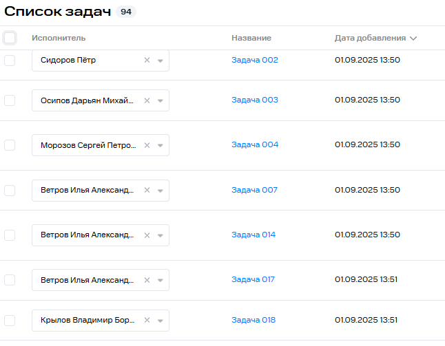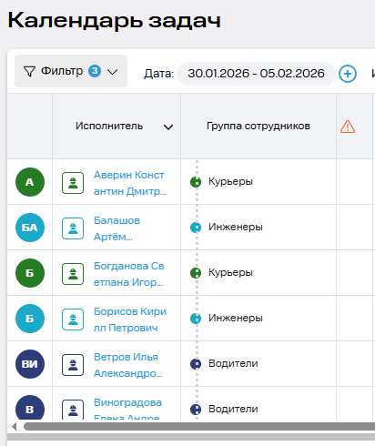 Если вы отметили в фильтре сотрудников и выбрали группировку задач по сотрудникам, то теперь все задачи по всем выбранным сотрудникам отображаются на одной странице.