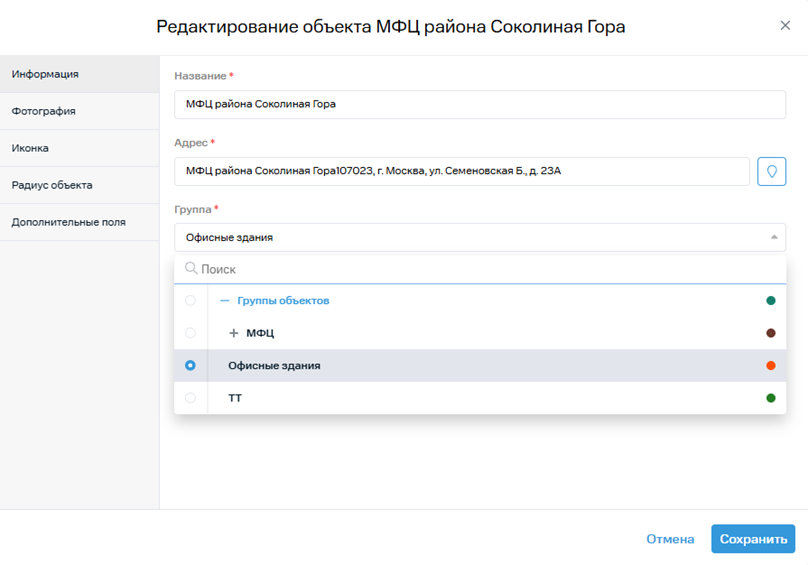 - ошибку, при которой у объекта не удавалось изменить его группу.