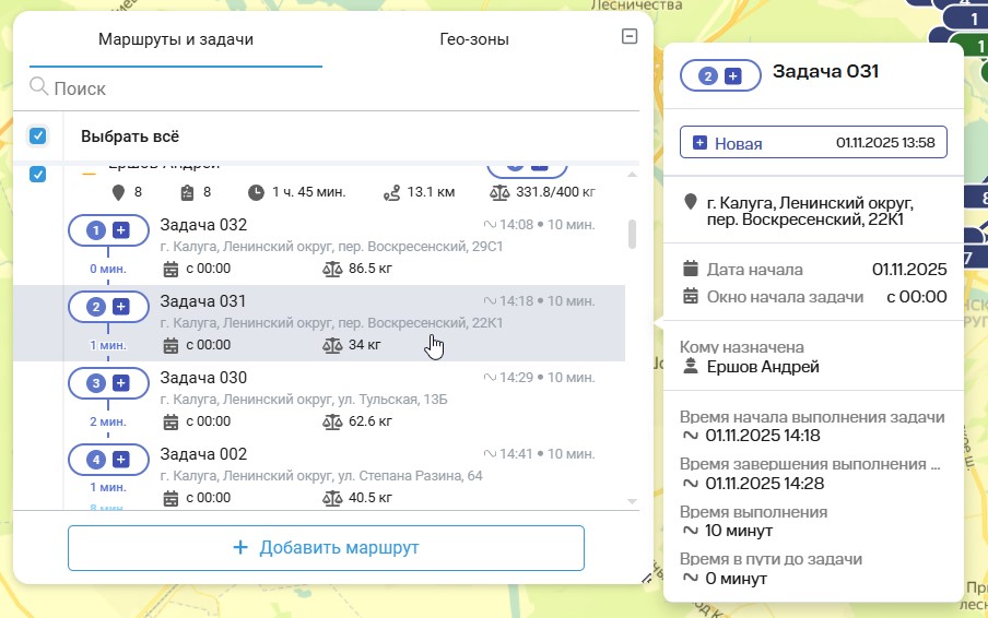 Мы обновили планировщик маршрутов, чтобы вам было проще работать с задачами. Теперь можно редактировать маршруты после их построения, видеть весогабаритные характеристики, загруженность сотрудников и другие важные данные прямо в интерфейсе.