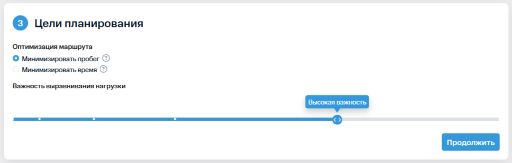 - настроить оптимизацию маршрутов — минимизировать пробег или время в пути в маршрутах. В первом случае задачи в одном маршруте будут находиться максимально близко друг от друга, во втором — в маршруте будут задачи, до которых быстрее всего добраться;